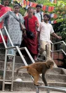 ◄  Monkeys still slide down the bannisters on the steps up to Swayambhunath, the monkey temple overlooking Kathmandu. Just as they did on my very first visit in 1972.