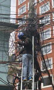 ◄  electricity in Kathmandu is definitely interesting, but this techie seemed to  know what he was doing!