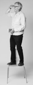 ◄ Of course any ‘person on a chair’ photograph of this type is going to remind you of Australian Lewis Morley’s photographic portrait of Christine Keeler, the star of Britain’s infamous ‘Profumo Affair’ sex scandal. Ms Keeler died in 2017, aged 75, but the 1963 photo is one of the iconic images of the 1960s. The photograph and the chair are both part of the Victoria & Albert Museum’s collection in London and it’s usually pointed out that although it looks like it the chair is not an original Arne Jacobsen design, Morley thinks he may have bought the chair, a cheap copy of the iconic original, in a Heal’s furniture store. Paul Dodd’s chair came from Ikea although it may have been even cheaper if indeed he picked it up from a roadside.