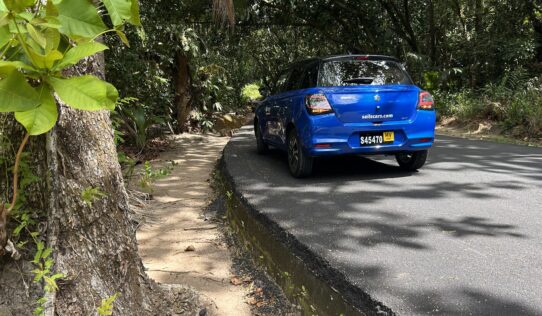 ▲ Transport – beware of drop offs – on Mahe and Praslin the sides of all the roads all seem to end abruptly! This is my Suzuki rent-a-car with a typical roadside drop off on Praslin Island. Do not put a wheel off the edge of the road, you’d wreck your rent-a-car.