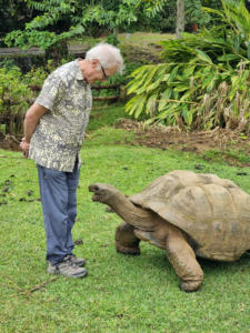 ◄ The Seychelles giant Aldabra tortoises come from the remote Aldabra atoll, closer to Madagascar or Comoros than any of the main Seychelles islands. You can encounter them at the Constance Lemuria and Constance Ephelia Resorts, and no doubt at other Seychelles locations, but this one I’m having a discussion with was in Mauritius.